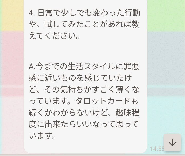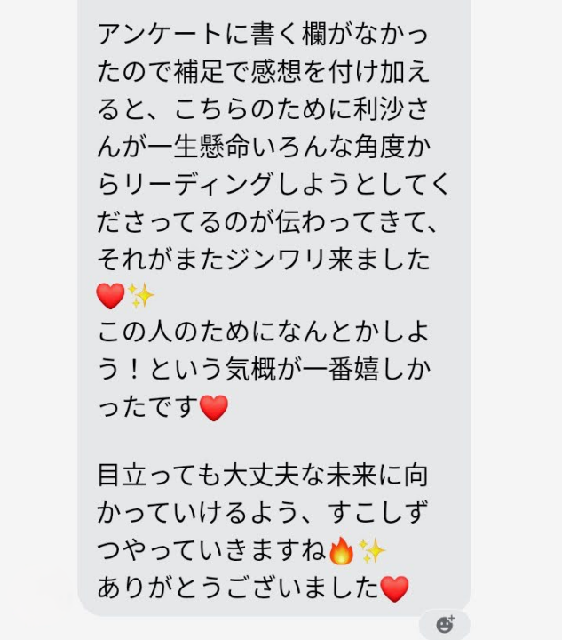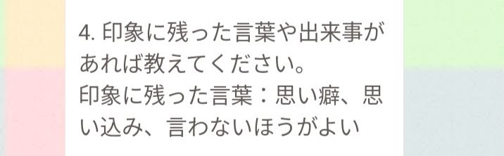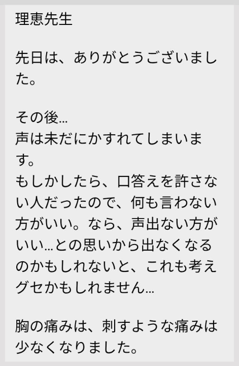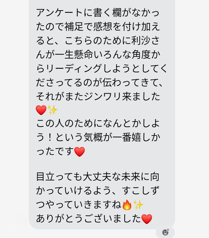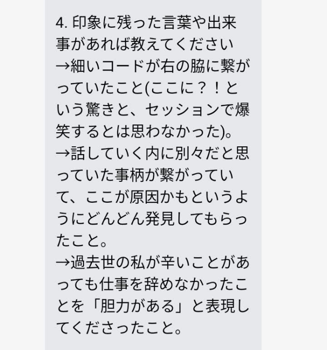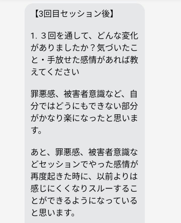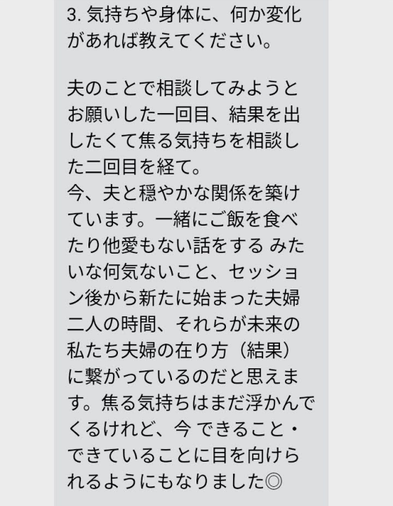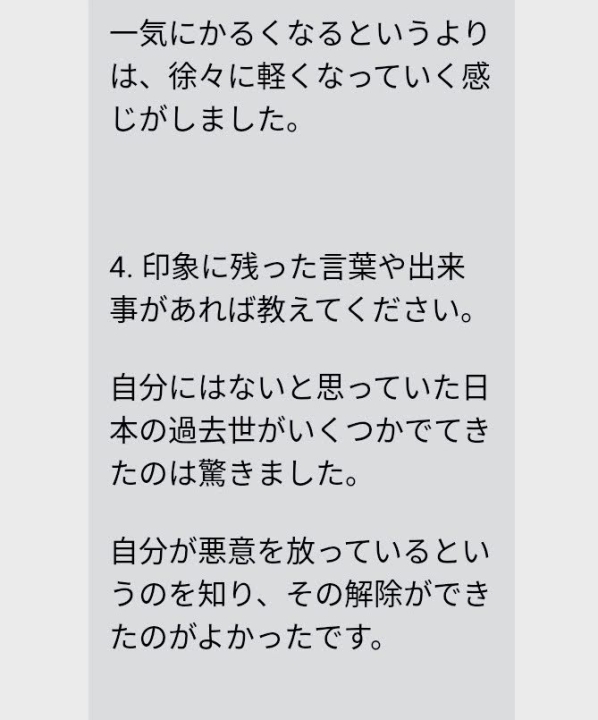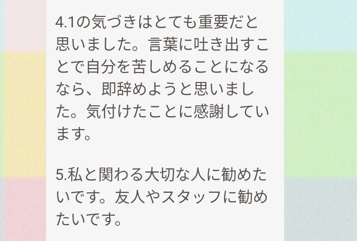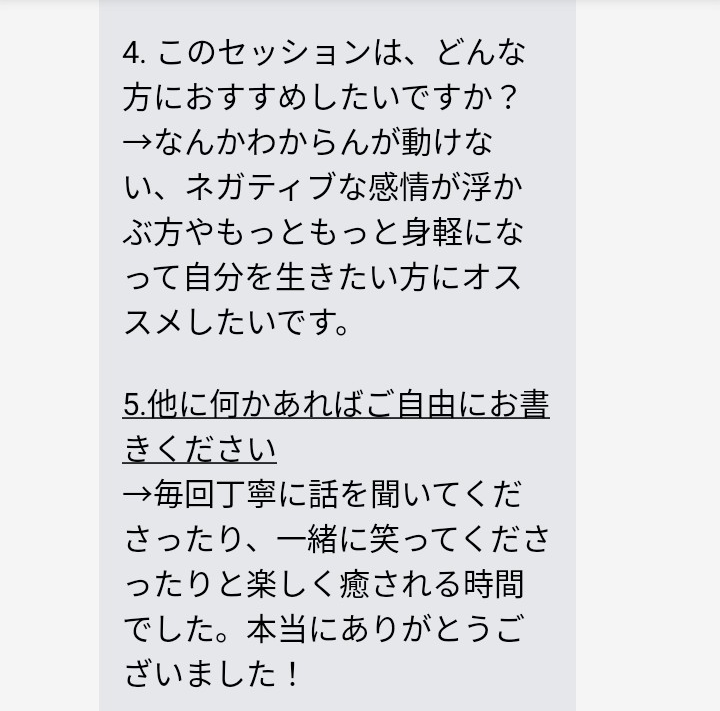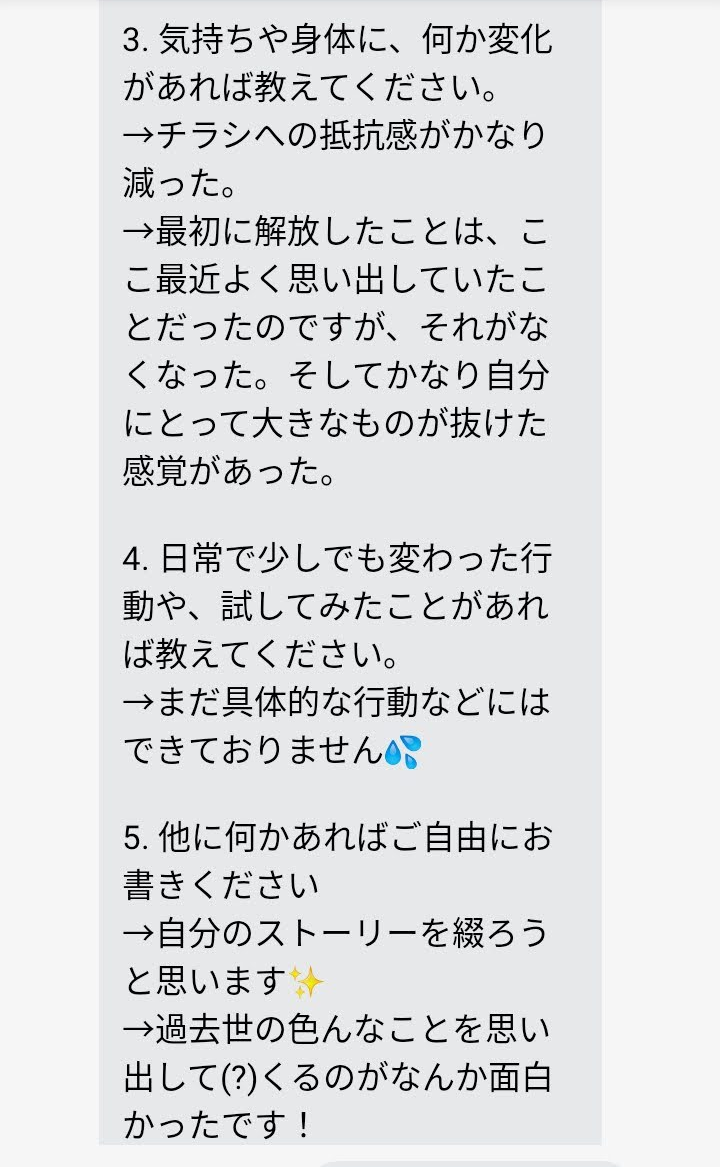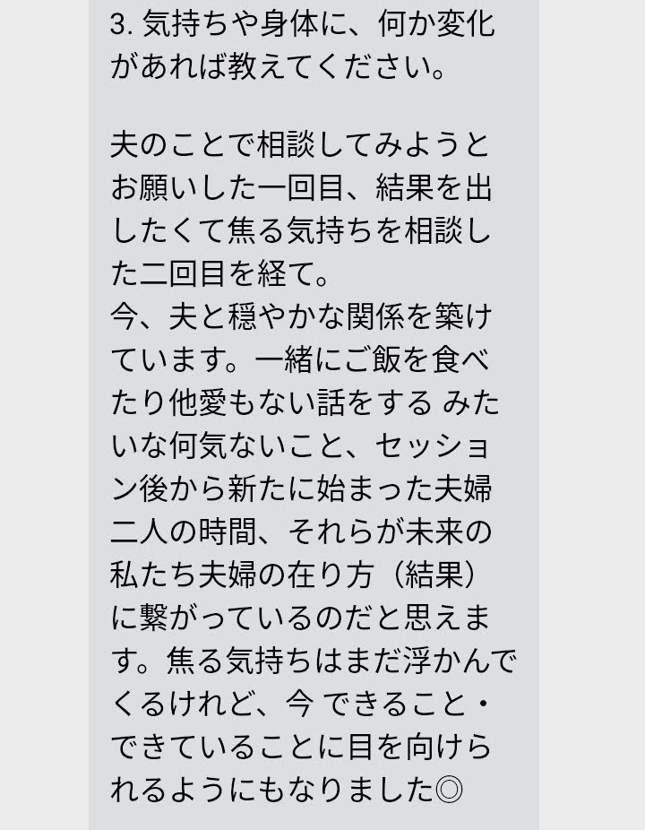 悩みに対しては、長いこと抱えてきていたので、これをきっかけに解決の糸口が掴めるかも?と、期待したいのと同時に、正直ものすごく信じきれていたわけではありませんでした。(長いこと抱えてきたことなので)