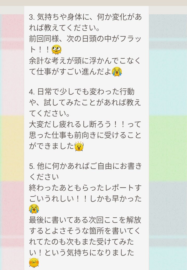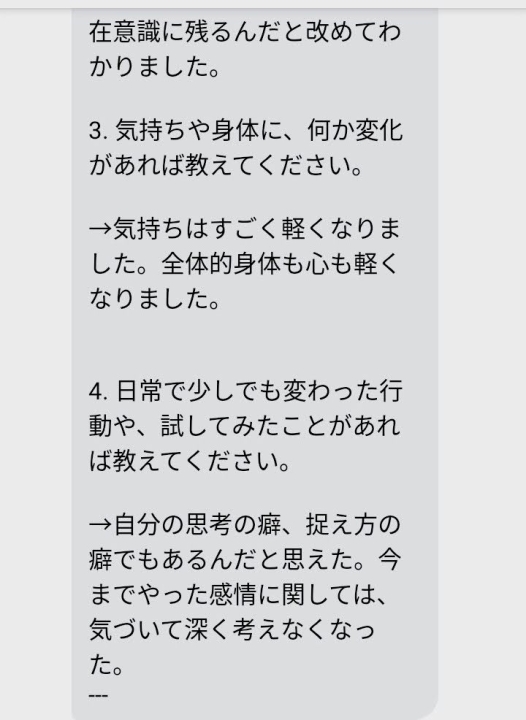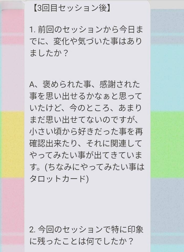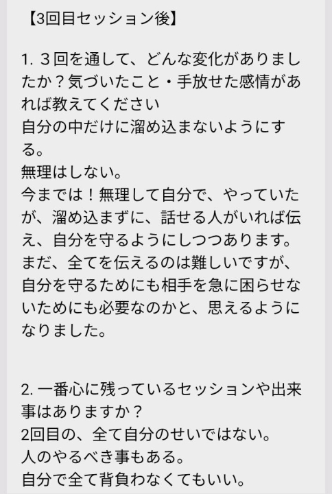 3. セッションを受けて、どんな事を感じましたか?(体や気持ちの変化、気づき等)