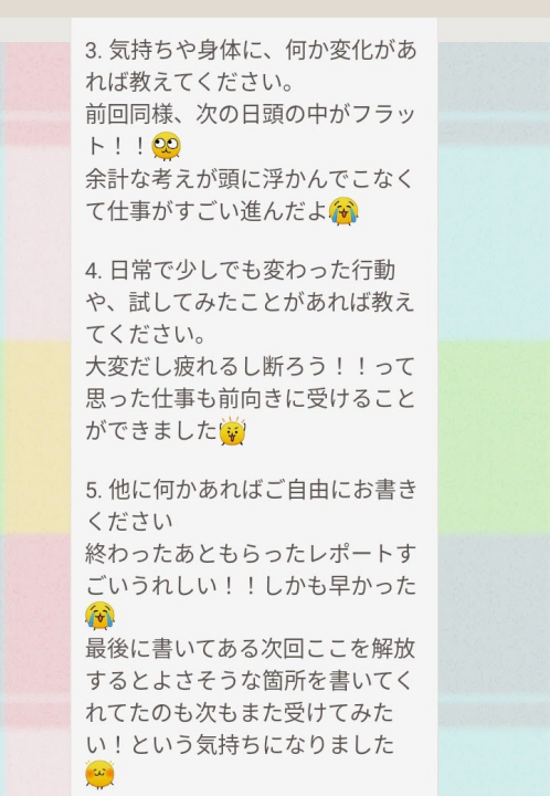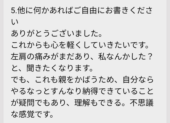 一度、解放できたものは戻らないそうなので、まだ解放できていないところを継続してお願いして、長いこと抱えてきたことに区切りをつけたいと考えています。
