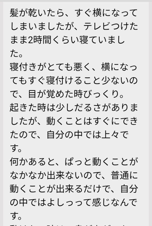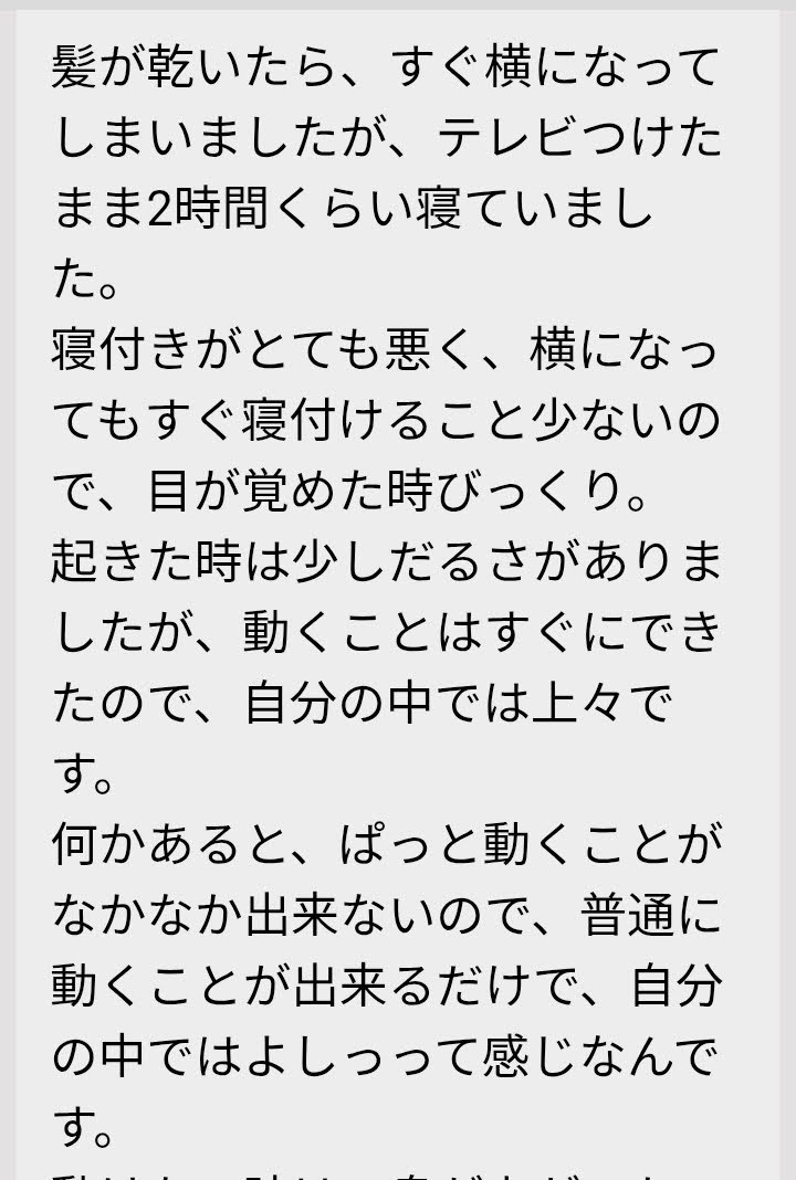 体調面では、まだ数日しか経っていないせいか、むしろ、肩こりや頭痛がある気がしています。(気候のせいもあるのかも)